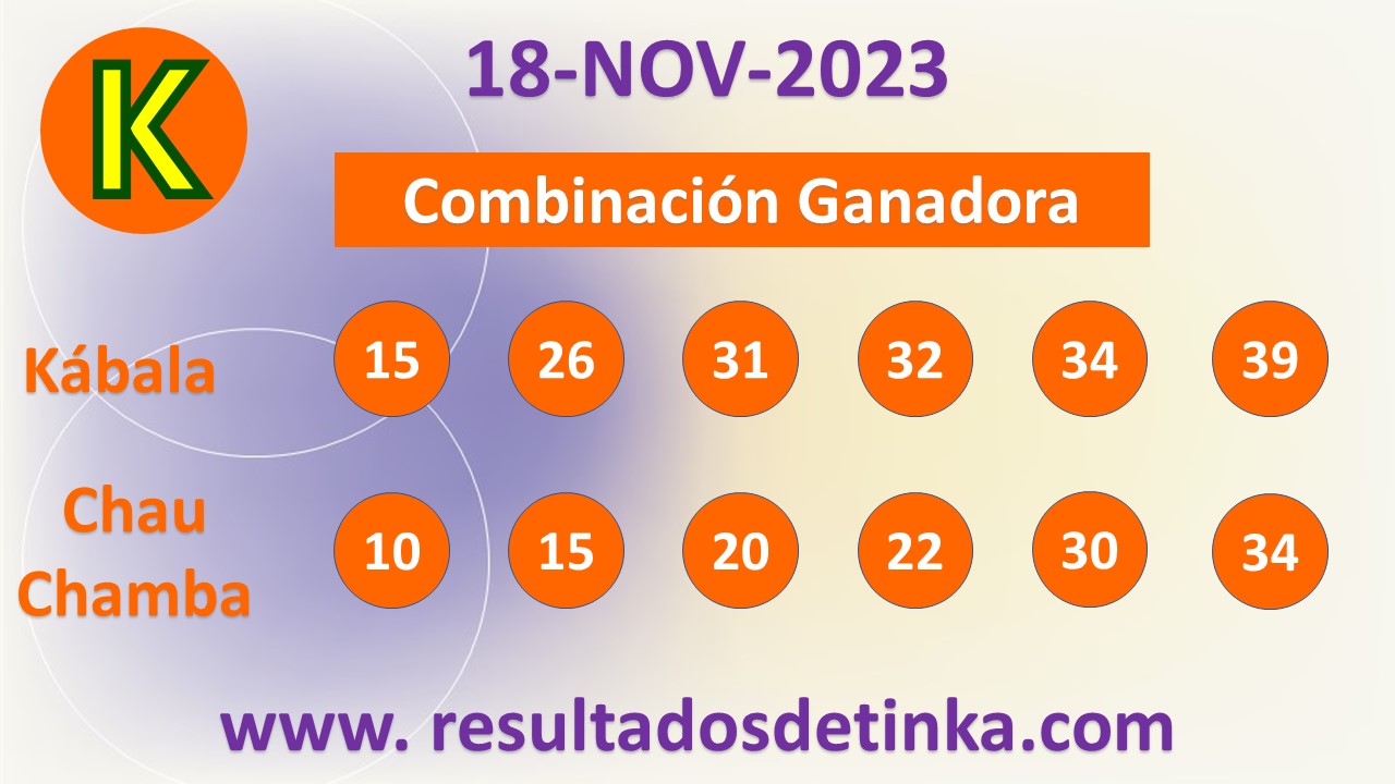 Resultados de Kábala del Sábado 18 de Noviembre de 2023. Cotejar Kábala del 18/11/2023. Premios de Kábala actualizados diariamente. La combinación ganadora de este sorteo se corresponde con los siguientes Números Kábala 15 26 31 32 34 39 Números Chau Chamba 10 15 20 22 30 34